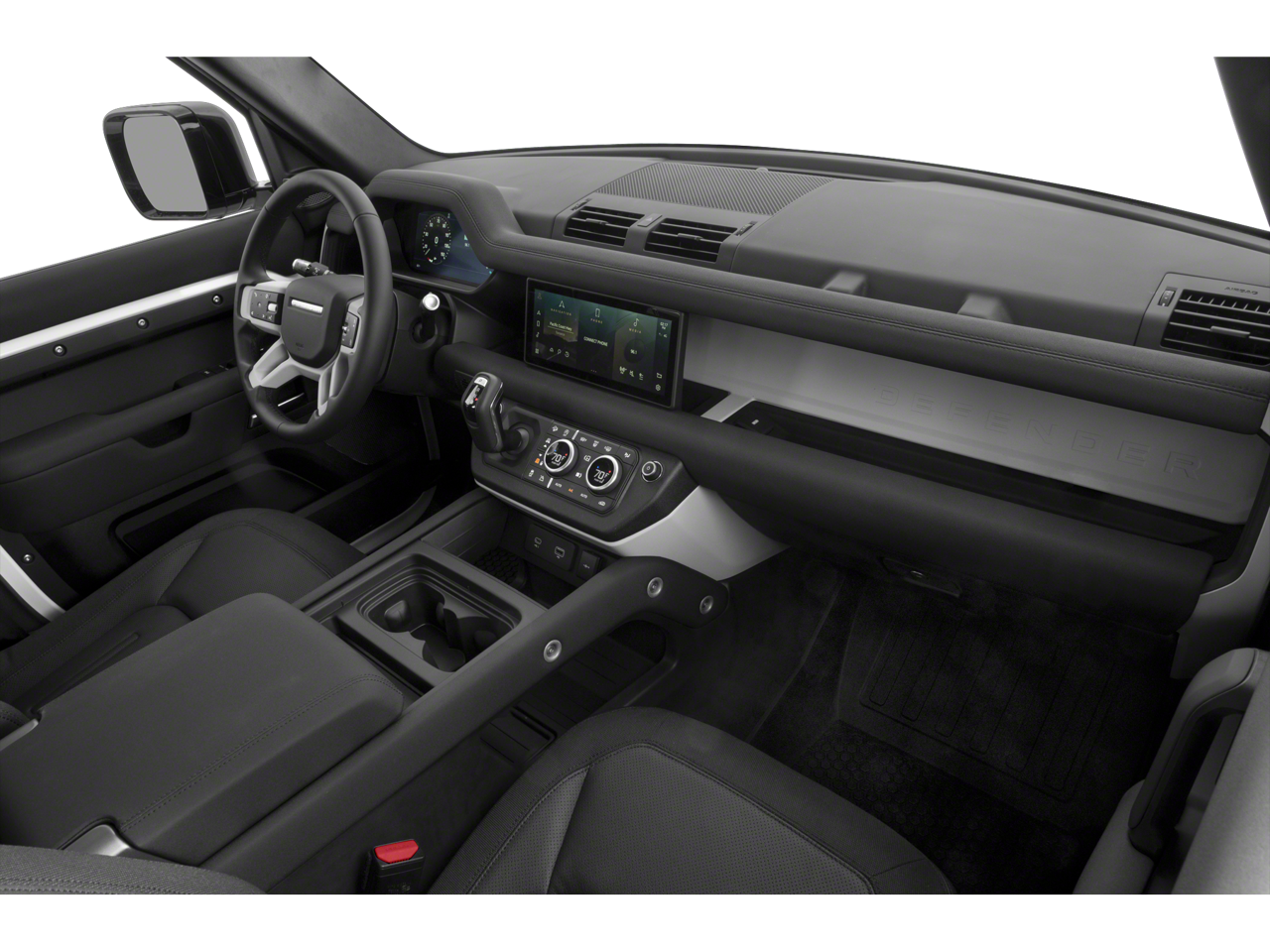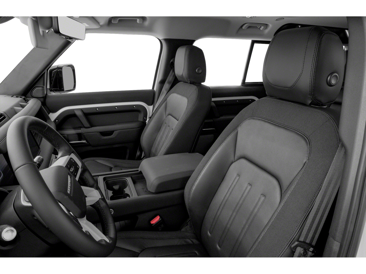 The exterior is enhanced with the Black Exterior Pack and bold 22-inch gloss black wheels, giving the Defender a commanding and contemporary presence.