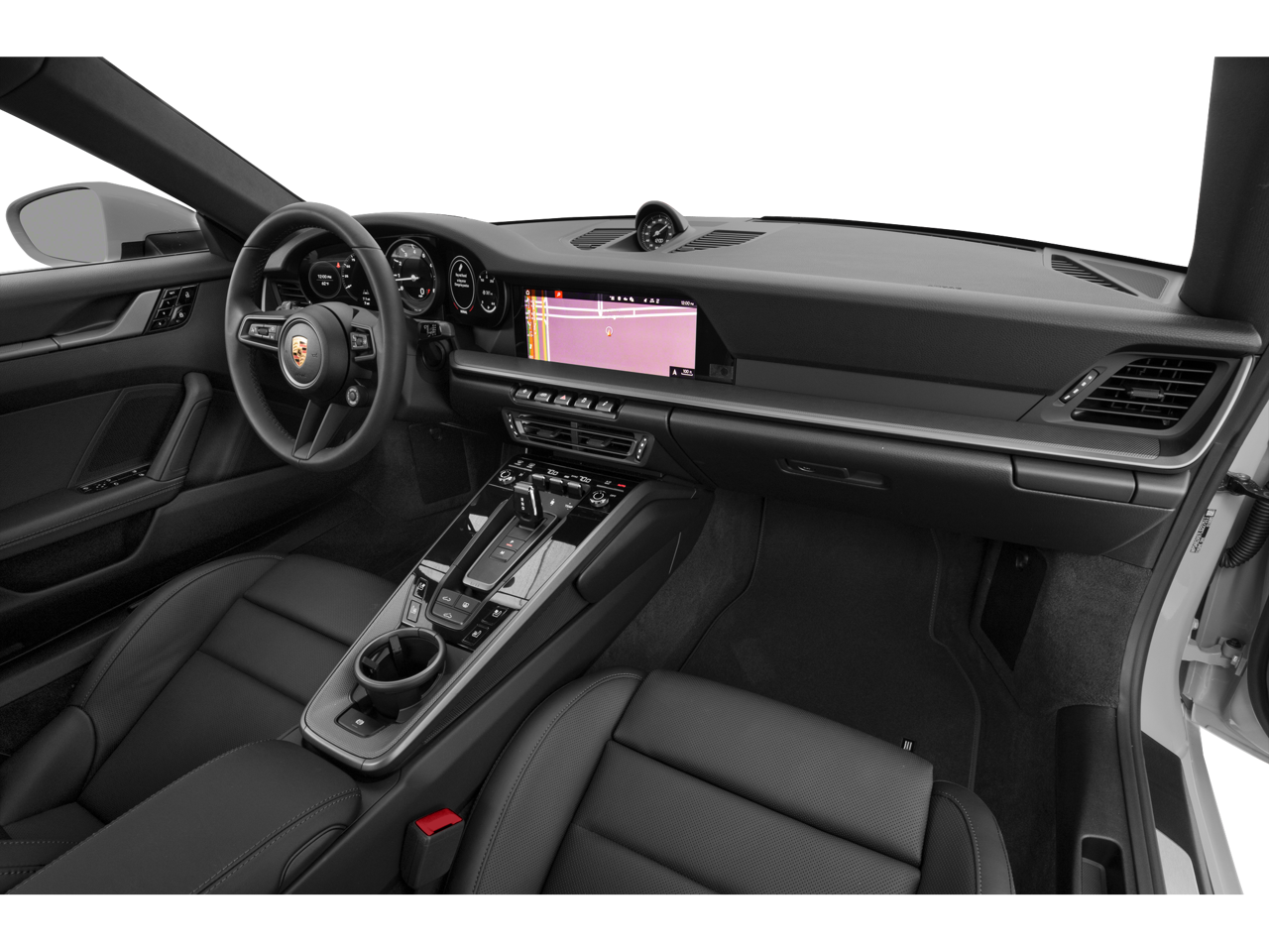 4-Way Sport Seats, 4-Wheel Disc Brakes, 8 Speakers, ABS brakes, Adaptive suspension, Air Conditioning, Alloy wheels, Apple CarPlay, Auto-dimming door mirrors, Auto-dimming Rear-View mirror, Automatic temperature control, Brake assist, Bumpers: body-color, Delay-off headlights, Driver door bin, Driver vanity mirror, Dual front impact airbags, Dual front side impact airbags, Electronic Stability Control, Exterior Parking Camera Rear, Four wheel independent suspension, Front anti-roll bar, Front Bucket Seats, Front Center Armrest, Front dual zone A/C, Front reading lights, Fully automatic headlights, Garage door transmitter: HomeLink, Heated door mirrors, Heated front seats, Illuminated entry, Leather Seat Trim, Leather steering wheel, Low tire pressure warning, Navigation system: Porsche Communication Management (PCM), Occupant sensing airbag, Outside temperature display, Overhead airbag, Overhead console, Passenger door bin, Passenger vanity mirror, Porsche Communication Management, Power door mirrors, Power driver seat, Power passenger seat, Power steering, Power windows, Radio data system, Rain sensing wipers, Rear anti-roll bar, Rear fog lights, Rear window defroster, Remote keyless entry, Security system, Speed control, Split folding rear seat, Spoiler, Sport steering wheel, Steering wheel mounted audio controls, Tachometer, Telescoping steering wheel, Tilt steering wheel, Traction control, Trip computer, Variably intermittent wipers, Wheels: 20" Front/21" Rear Carrera S.
