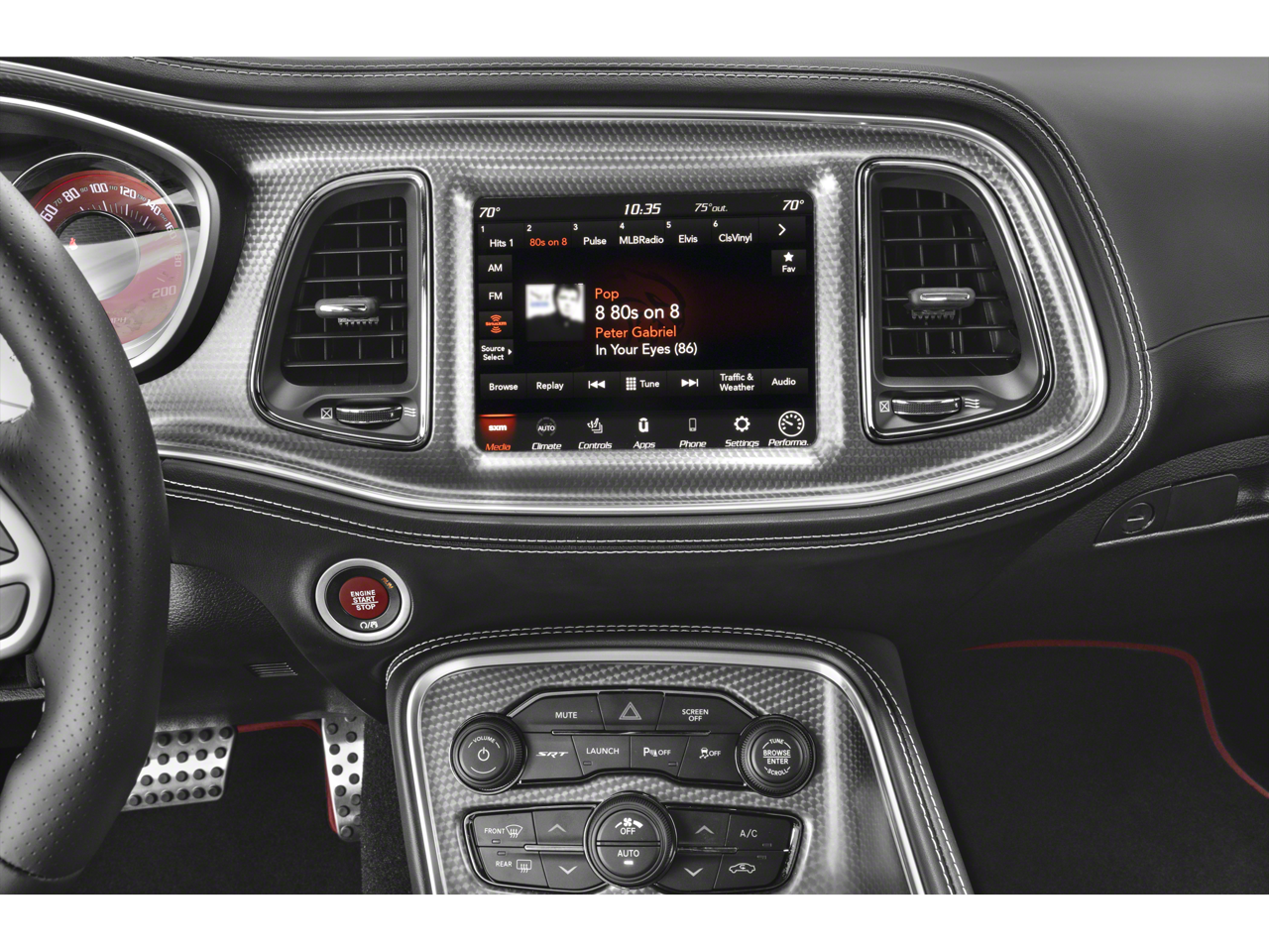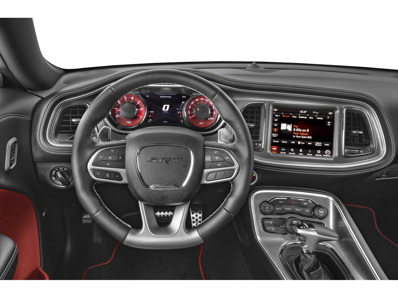 Jailbreak Package, Alcantara/Laguna leather seats with SRT Hellcat logo, Technology Group, Driver Convenience Group, Harman Kardon 18-speaker premium audio, adaptive cruise control, blind-spot monitoring, power sunroof, SRT performance spoiler, Brembo brakes, Launch Control, Line Lock, active exhaust, SRT Performance Pages.