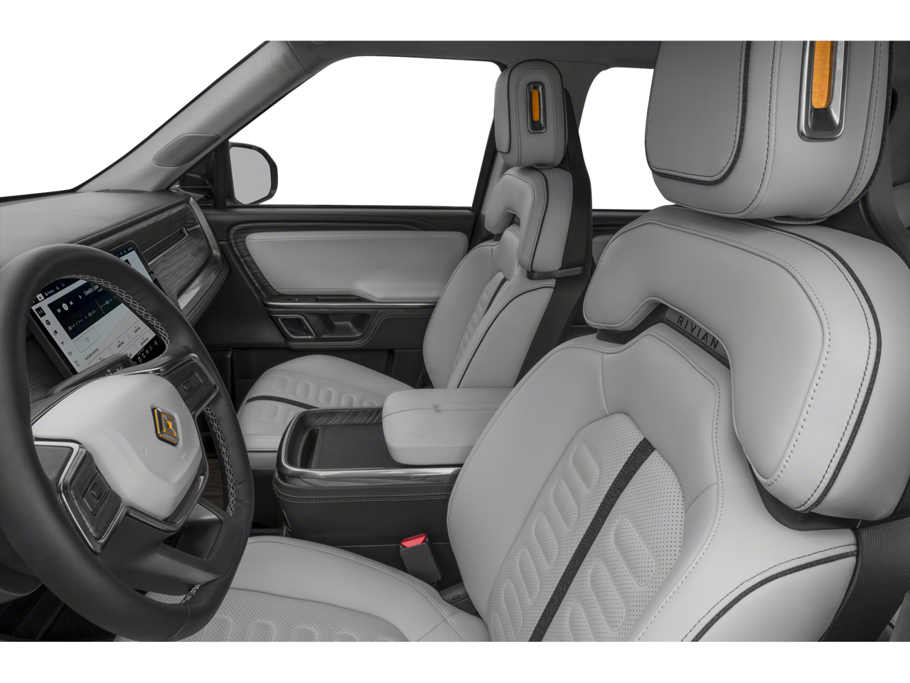 Technology is a standout, featuring Rivians large touchscreen interface, Driver+ assistance system, 360-degree camera, wireless charging, and continuous over-the-air updates that keep the vehicle current long after purchase. The Meridian premium sound system provides an immersive audio experience to match the refined interior.
